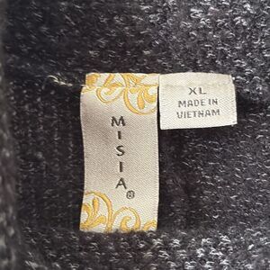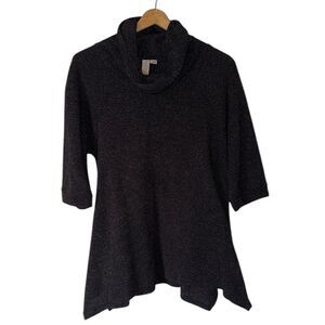 MisiaâCowl Neck Sweater Top XL Gray Black Asymmetricalâ Hem Stretch Knit