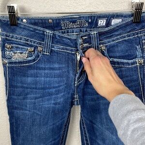 Miss Me Boot Cut Jeans Jeweled Rhinestone Bling Low Rise Y2K Sz 27