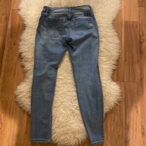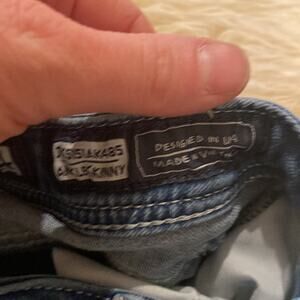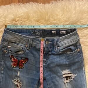 THE CUTEST!!! Miss Me girls ankle skinny denim blue jeans. Heavily distressed with colorful butterfly patches.