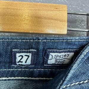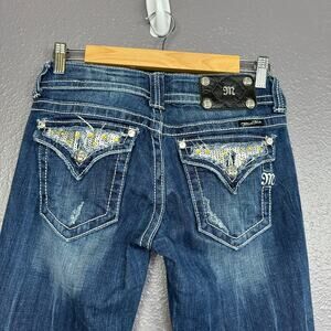 Miss Me Size 27 Sparkly Sequin Silver Bootcut Jeans Flap Pockets Dark Blue