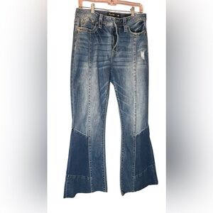 Miss me ladies heaven flare wide leg high rise jeans boho grunge retro size 30