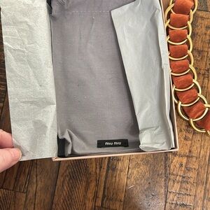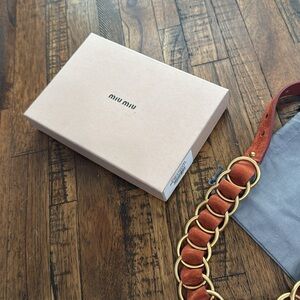 Miu Miu LEATHER Necklacegold tone rings adjustable terra-cotta Bigiottera NWT