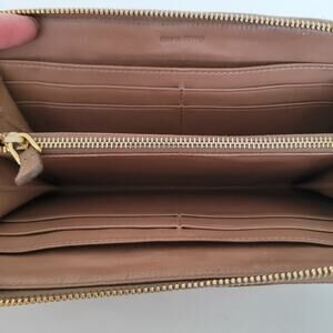 Miu Miu Wallet Matelasse Beige Large Accordion Card Holder Logo Leather Zip