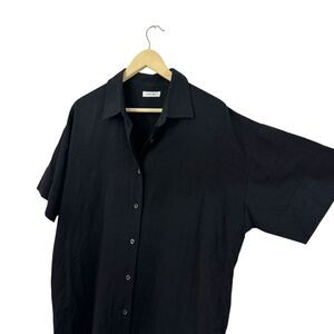 Mod Ref NEW Large Button Dress Midi Linen Blend Black Short Sleeve Womens