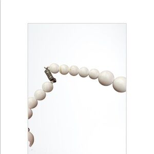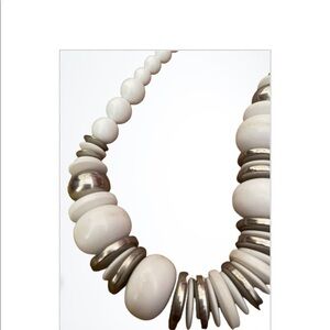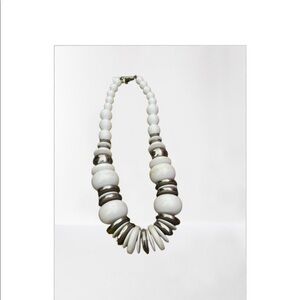 White and silver necklace with some wear, matching pierced earrings. Twiggy style mod look. Earrings are approximately 1”, necklace is approximately 16”. Very cool vintage look.