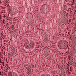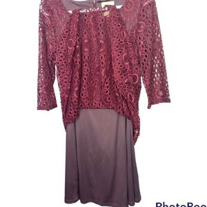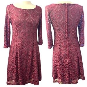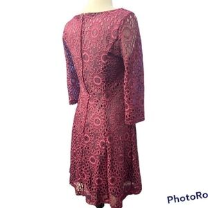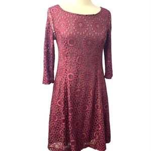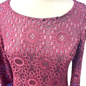 ModCloth Dress Cranberry Burgundy Floral Lace Overlay Lined Long Sleeves