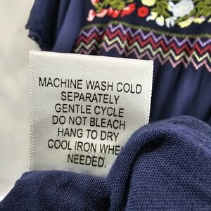 ModCloth Dress Womens Large Blue Shift Peasant Embroidered Floral Peace Mod