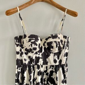 Moda Beautiful Black & Cream Print Dress. Stretch, comfortable fabric, adjustable straps, zippered back and flattering details. Perfect for any occasion, dress down with denim jacket and booties or dress up with cardigan and heels.