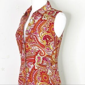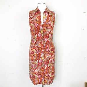 Moda Seta silk Paisley print shirt dress, buttons down the front sleeveless dress, beautifully lined.