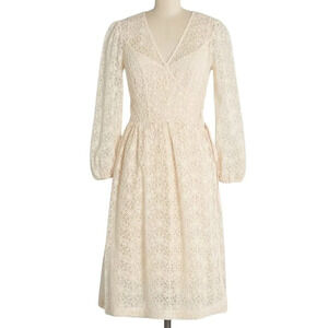 Modcloth Magic in the Air Wrap Dress Ivory Floral Lace w/ Liner Size Small NWT