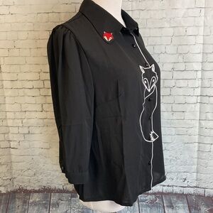 Black Vintage 3/4 Sleeve Quirky Fox Blouse Modcloth/Royal Monk - Foxy As You Wanna Be Button-up Blouse XL Goth Dark Princess Retro