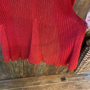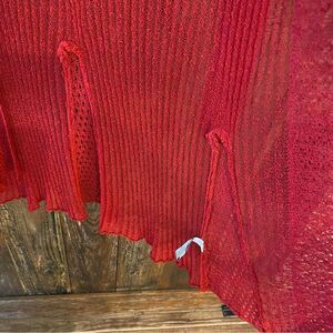 Moffi Sz M Red Stretch Knit Draped Hem Open Long Sleeve Maxi Boho Cardigan