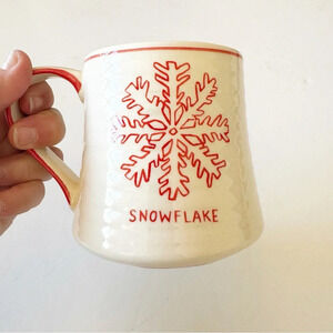 Molly Hatch Anthropologie Snowflake Coffee Mug Pottery Cream Red Winter Vibes