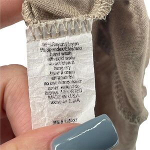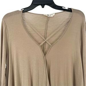 Molly Green Top Brown Tan Criss Cross V Neck Draped 3/4 Sleeve Jersey Stretch Knit Casua Shirt Super Soft Lightweight Elevated Basic