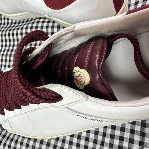 Moncler Ms. Moncler Angeline White Leather Sneaker Maroon Red Accent EU 40 US 10