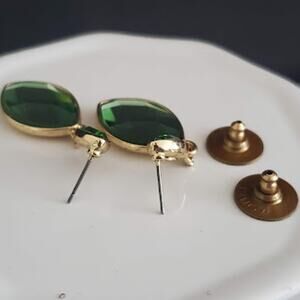 Monet Earrings Green Faceted Crystals in Gold Tone Setting 1 inch Drop from Stud