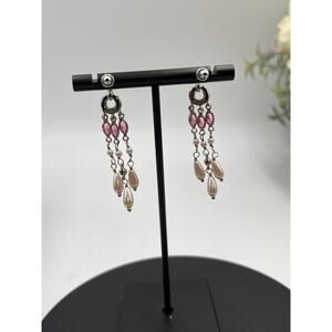 Monet Pink Pave Rhinestone Faux Teardrop Pearls Dangle Chandelier Earrings