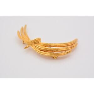 Monet Vintage Bow Pin Brooch Textured Brushed Gold Signed 1990s Bin1