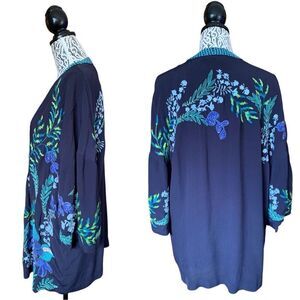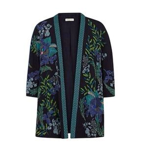 Monsoon Elliah Embroidered Open Kimono Navy Size L