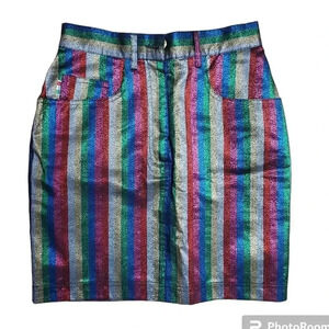 Moschino Rainbow Metallic Striped Mini Skirt M
