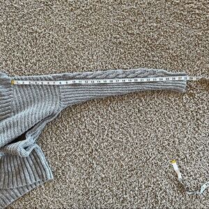 Mossimo Supply Company gray oversized cardigan, open front with cable stitch design, slouch shoulders and hi/lo hemline.