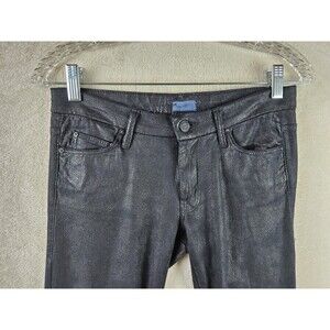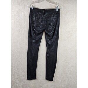 Mother The Looker Crackle Black Faux Leather Look Jeans Size 26