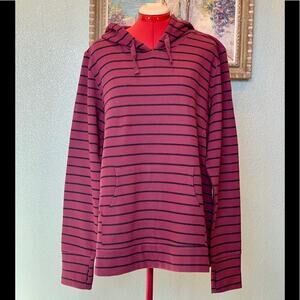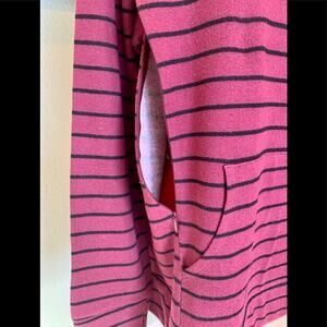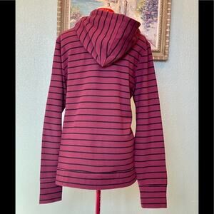 Motherhood nursing striped burgundy maternity hooded pullover in a size XL. The top is incredibly soft on the inside and thick enough to jeep you warm year round. Convenient zippers on either side for nursing. This sweater is in excellent condition with no damage or stains to the fabric or stitching.