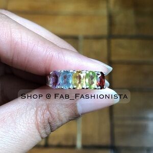 This lovely ring is embellished with 5 colorful stones that glimmers in the light revealing a rainbow of colors.