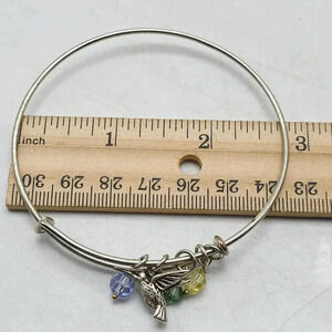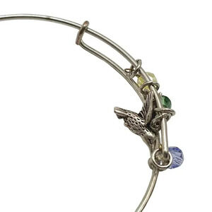 Multicolor Glass Beads Hummingbird Charm Bangle Bracelet Silver Tone Vintage