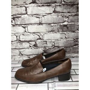 Selling Munro American Brown Leather Slip On Square Toe Heel Loafer Shoes Women’s Sz 10N US/41EU