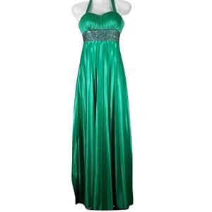 My Michelle Emerald Green Satin Sequin Evening Prom Dress Size S/XS. This dress would also be perfect for a formal St. Patrick's Day event!