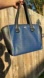 Pre owned and loved. Some scratching as shown. I am not familiar enough with these bags to know how to fix the scratches so pricing low. Designed in Italy. Made in Milano. Blue, black, gold hardware.