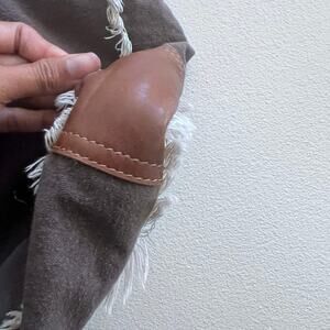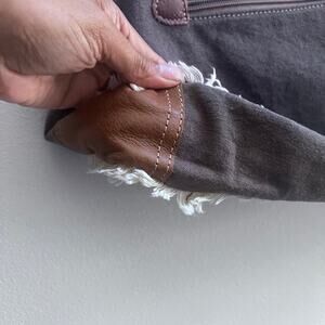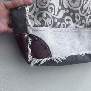 Elevate your accessory game with this unique Myra Bag! This small bag features a charming combination of fur, leather, and canvas in white, dark gray, and brown tones. It's the perfect size for carrying your essentials while adding a touch of rustic flair to your outfit.