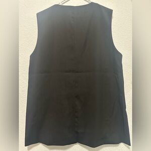 Stylish black sleeveless vest with button-up front. Perfect for layering.