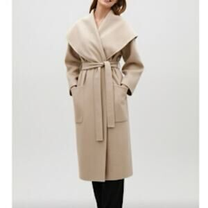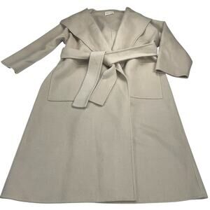 NAP Loungewear 100% Wool Hooded Belted Oversized Coat Large Pockets Tan Size S