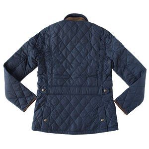 This is a brand new jacket from Ralph Lauren! It features classic equestrian inspired styling in classic navy with a quilted design and suede shoulder patches.