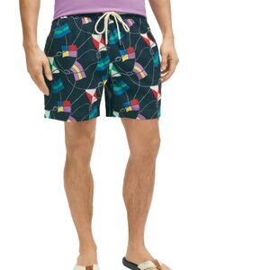 NEW $99 Brooks Brothers Swim Trunks (Shorts)! S M L XXL Navy With Nautical Flags
