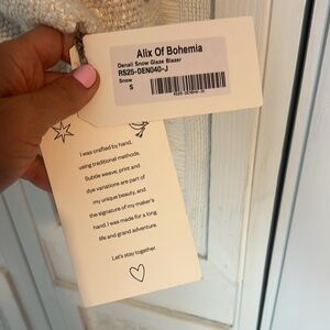 NEW ALIX OF BOHEMIA Denali snow glaze blazer jacket in snow Sz S