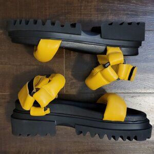 New without box, never ever worn, ALLSAINTS Helium Sandal Womens 9 Lug Chunky Platform Black Yellow Retail $299.