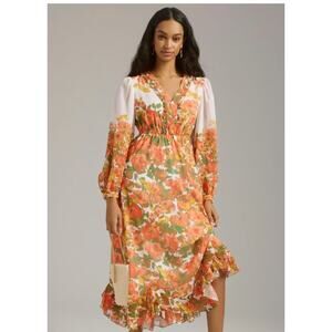 Anthropologie NWT Vineet Bahl Maxi Dress LS 70s Pop Floral Artsy Boho Hippie XS