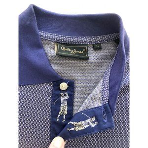 NEW Bobby Jones Collection Golf Shirt! M Blue & White Pattern Signature Golfers
