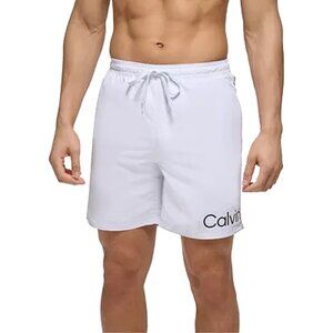NEW! Calvin Klein Logo 7 Inch Volley Swim Trunks! XXL White With Black Logo