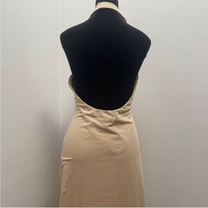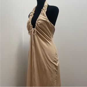 NEW! Camila Coelho- Kaseya Midi Dress Nude Halter Neck Drawstring Backless Size XL