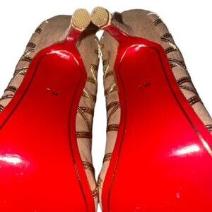 Elevate your style with these stunning Charles Jourdan pumps. The pointed toe, slip-on design and ultra-high stiletto heel make them perfect for any formal occasion, from weddings to workwear. The gold suede upper and leather lining exude luxury while the solid pattern adds a touch of elegance. These shoes are brand new and have never been worn. They come in US size 7 Medium and were made in China. Whether you're attending a party or a christening, these pumps will complete your look. Don't miss out on the chance to add this beautiful pair of heels to your collection.
