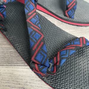 Step into comfort and style with the Columbia Red River Sandals, designed for the active man who loves the outdoors. These size 13 slip-ons feature a sleek black and blue-red color scheme with a distinctive geometric pattern that stands out. The fabric upper provides a durable and breathable fit, perfect for hiking and other outdoor adventures. The sandals boast a convenient hook and loop closure for easy on-and-off, making them ideal for those on-the-go moments. With a medium width and a supportive design, they're suited for a variety of activities. Whether you're hitting the trails or running errands, these Columbia sandals are a versatile addition to your footwear collection.