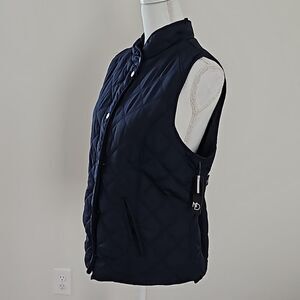 NEW DIRECTIONS Quilted Sleeveless Vest Blue, Diamond Pattern, Snap Closure,L