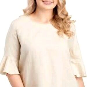 NEW! FOR CYNTHIA Linen Ruffle Sleeve Blouse 3X.