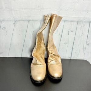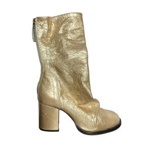 Free People metallic gold crackle leather slouchy tall heel boots size 37 new