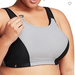 NEW GLAMORISE Sport Bra Size 44DD Grey/Black NWOT