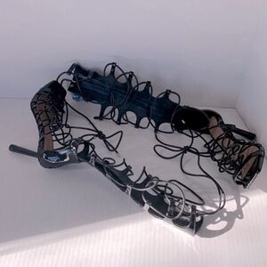 NEW Gianni Bini Rydelle Gladiator Patent Leather Knee High Sandals Heels